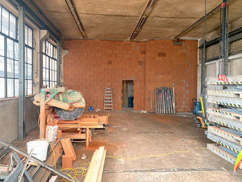 Eine Halle – nur zwei Häuser von meinem bisherigen Atelier entfernt – wird gerade für mich adaptiert und bekommt Schritt für Schritt ein neues Gesicht.