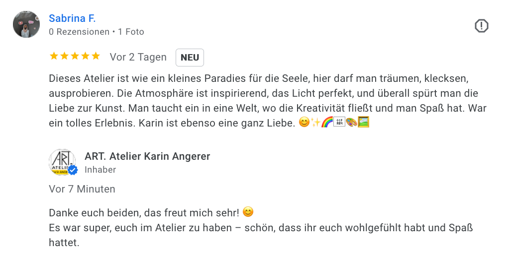 Termin nach Vereinbarung, auch am Wochenende möglich: +43 / 664 / 166 77 67 oder info@KarinAngerer.at
