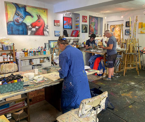 Wir haben beim Malen und Skulpturenbauen eine wunderbare Lockerheit und jede Menge Spaß erlebt. Die Endergebnisse könnten unterschiedlicher kaum sein –